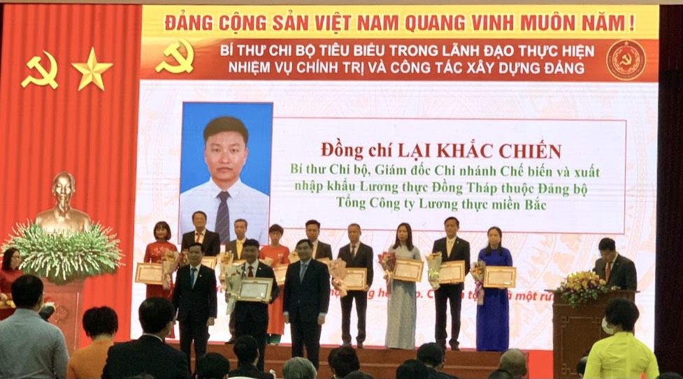 Với những thành tích đạt được trong lãnh đạo thực hiện công tác xây dựng Đảng và hoạt động sản xuất kinh doanh, đồng chí Lại Khắc Chiến, Bí thư chi bộ, Giám đốc Chi nhánh Chế biến và Xuất nhập khẩu Lương thực Đồng Tháp trực thuộc Đảng ủy Văn phòng Tổng công ty Lương thực miền Bắc, vinh dự được Ban Thường vụ Đảng ủy Khối Doanh nghiệp Trung ương tuyên dương Bí thư chi bộ tiêu biểu trong lãnh đạo thực hiện nhiệm vụ chính trị và công tác xây dựng Đảng giai đoạn 2017-2020./.