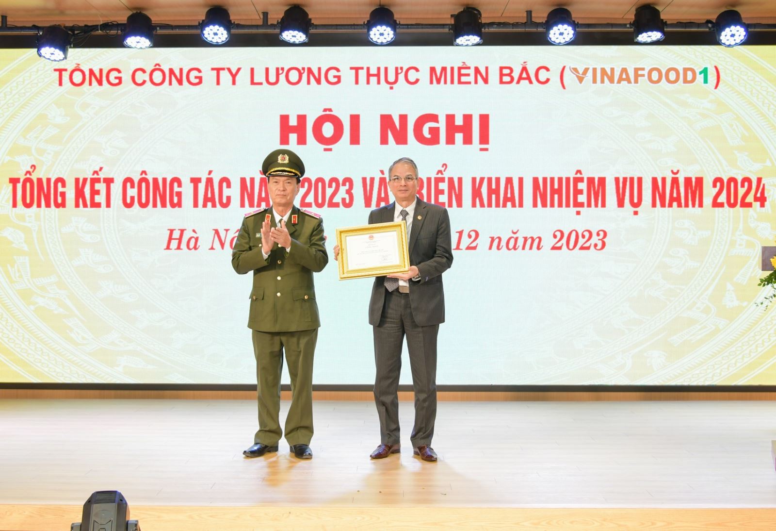 trao chứng nhận đơn vị đạt tiêu chuẩn ‘‘An toàn, an ninh trật tự’’ năm 2023 cho Tổng công ty Lương thực miền Bắc